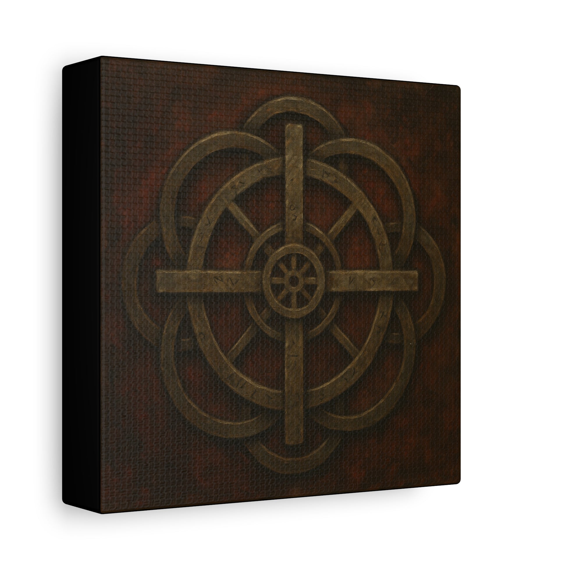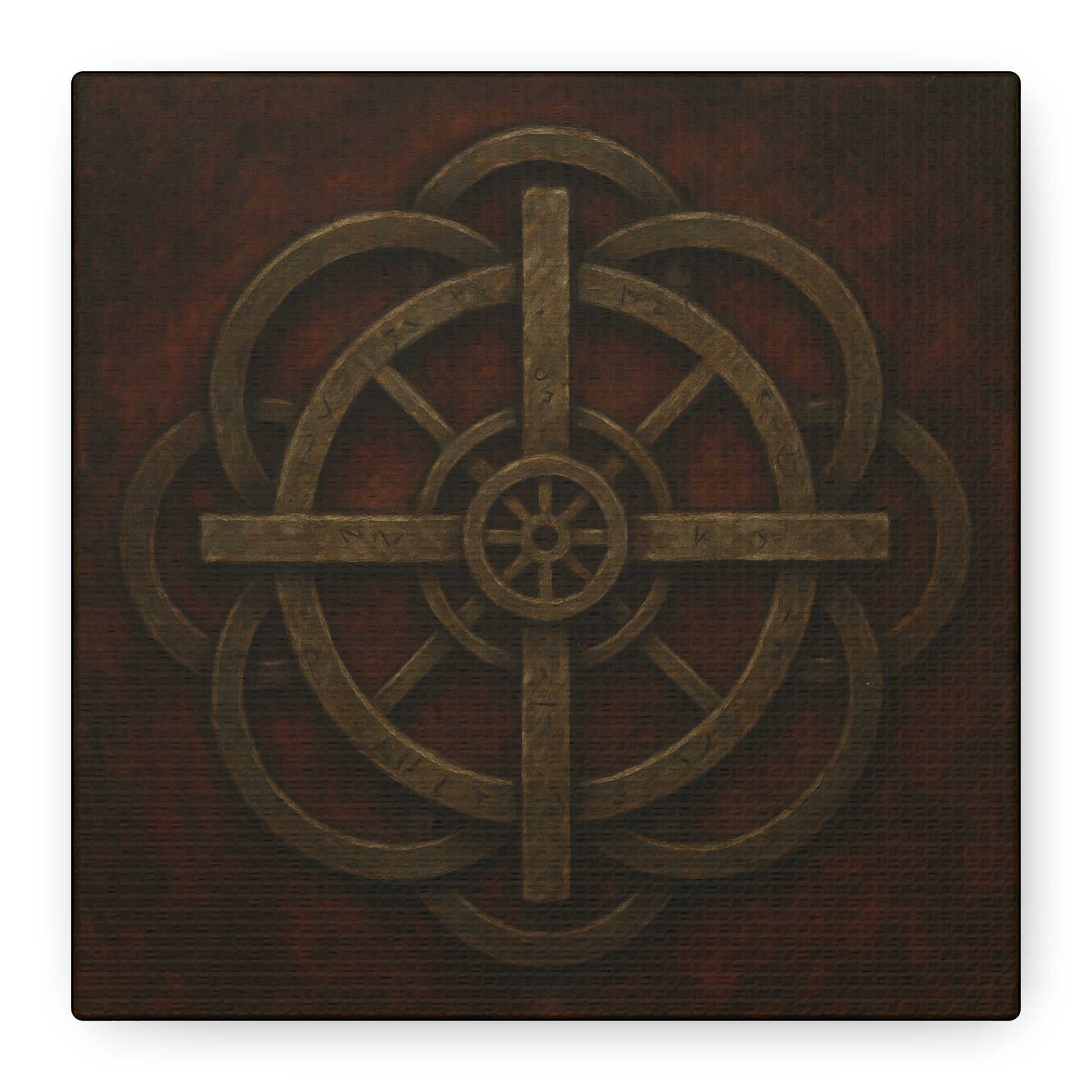 A heavy crown forged from steel and blood — The Brotherhood canvas channels the raw industrial heart of Stillwater. Crimson lines interlace like weld seams across a rusted mandala, symbolizing grit, loyalty, and brute strength. The design mirrors the Brotherhood’s creed: built, not born.