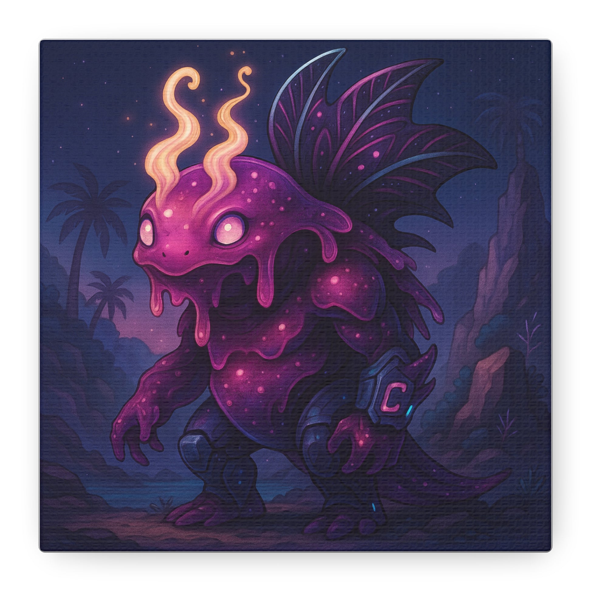 A soft-bodied yet durable mech-beast, glowing with a jelly-like sac and cake-batter circuits beneath its plated shell.