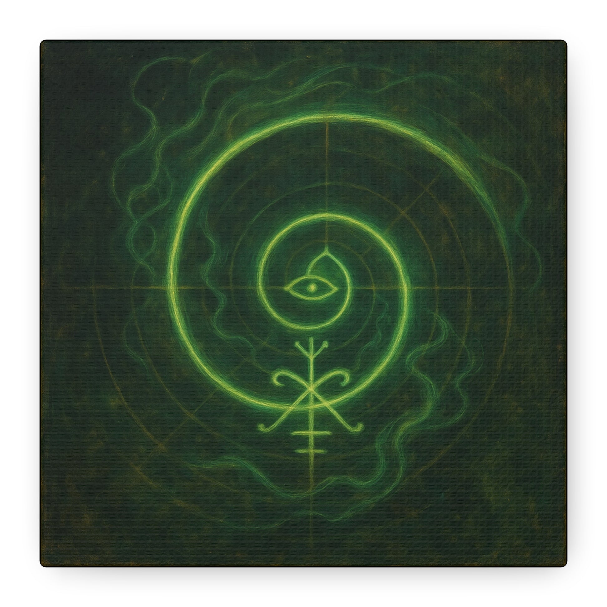 The Sons of Samedi come alive in an ethereal haze of green smoke and golden ash. A skeletal mask rises from the mist, crowned in neon sigils and ancestral markings. This canvas weaves mysticism with rebellion — the rhythm of drums beneath city lights, a hymn to freedom and fate.